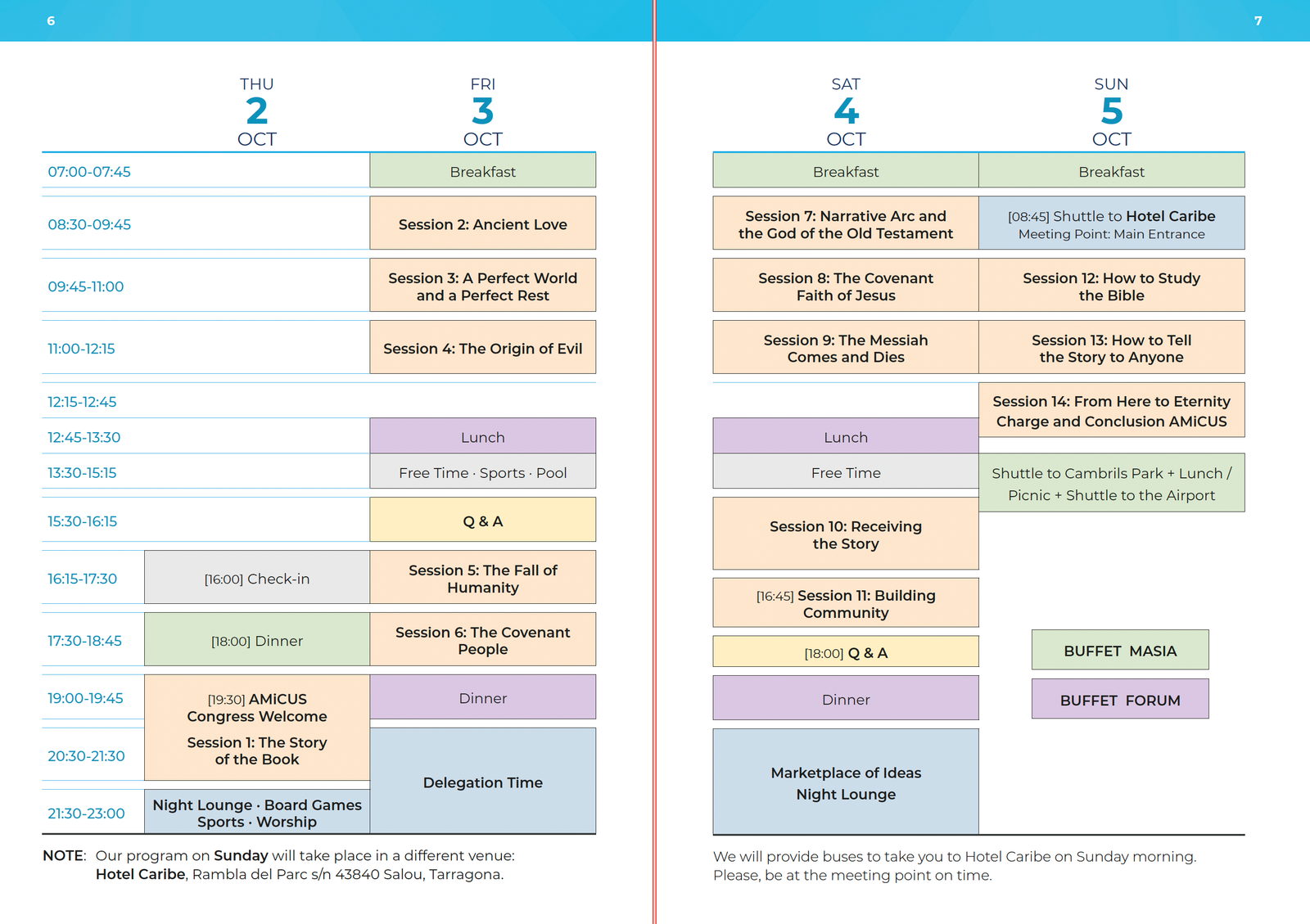 Yes, on Sunday, 5 October, we will provide a shuttle bus to the Barcelona (BCN) Airport, leaving from the venue at 14:30. If you are interested in this service, please let your AMiCUS/youth director know when you register. That means you should book flights starting 18:00 on Sunday.
